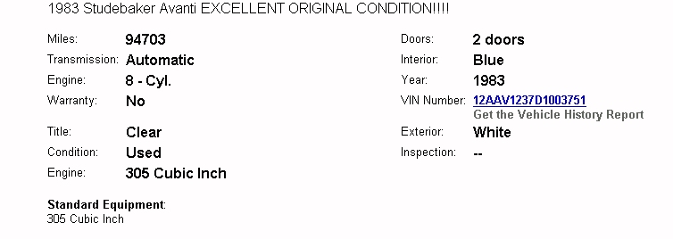 Bob's Studebaker Resource Website 1983 Avanti II RQB-3751 - July 2005