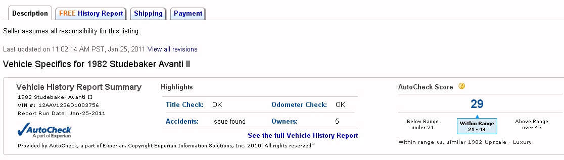 Bob's Studebaker Resource Website 1983 Avanti RQB-3756