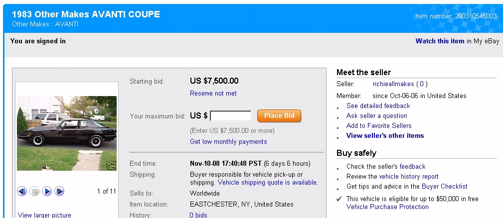 1983 Avanti RQB-3823 Listing