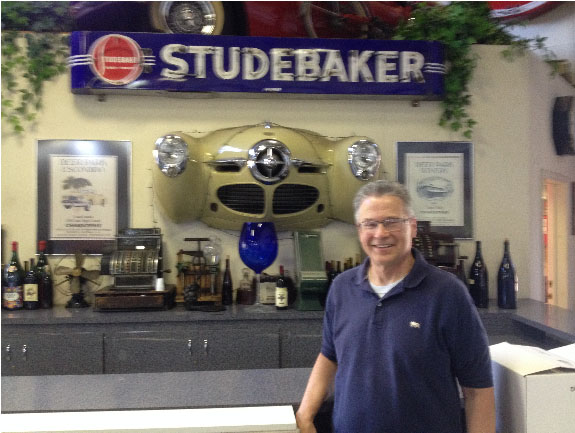 Now back to the fun part of owning a GT Hawk. Owning a classic car has prompted me to visit three auto museums during our vacations this past year. I saw some amazing cars including Studebakers of all years and body styles. In May 2014 we went to the Deer Park Winery and Classic Car Museum in San Diego County where they not only have some fine Studebakers but a great display wine bar with a large neon Studebaker sign behind the bar (see picture). Two months later we went to the Seal Cove Auto Museum in Mt. Desert, Maine, while visiting friends. The Seal Cove Museum specialized in classic New England cars. It didn’t have any Studebakers but many other beautiful classics were there. I went to a museum in August with my 93-year-old mother. It was like a trip down memory lane for her. The Northeast Classic Car Museum in Norwich, New York, is not to be missed if you are ever in the Cooperstown area. The museum has an amazing collection that includes a 1916 Studebaker Model ED-6 Limousine and a 1927 Studebaker President Big Six. All of the more than 160 cars in the Northeast Classic Car Museum were in pristine condition. A volunteer guide took us through the museum buildings where he pointed out the major features of the cars as the cars evolved.