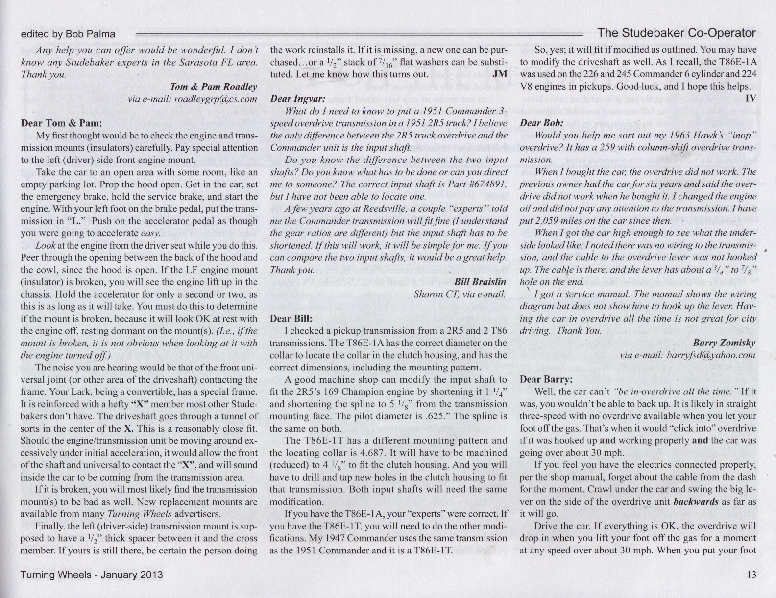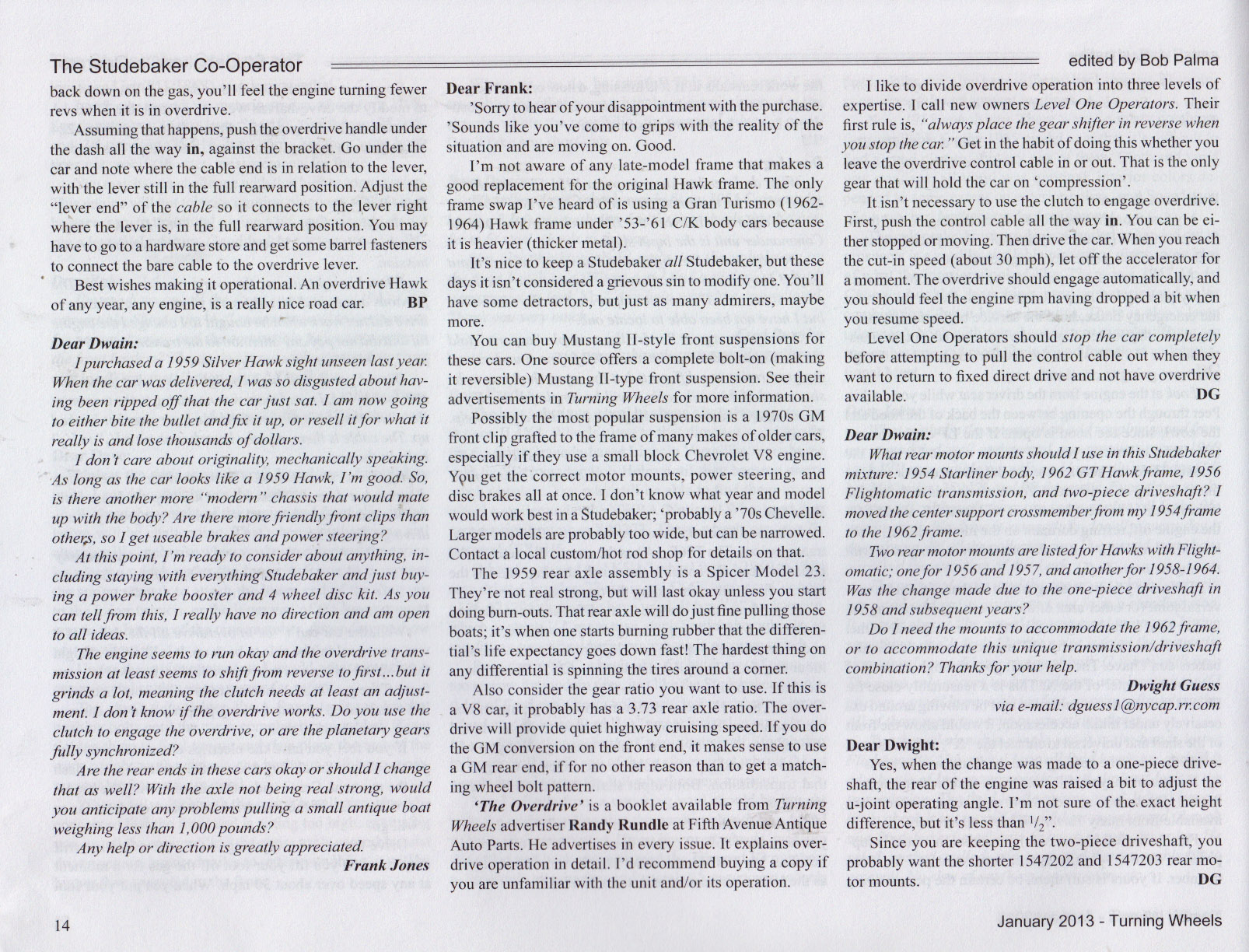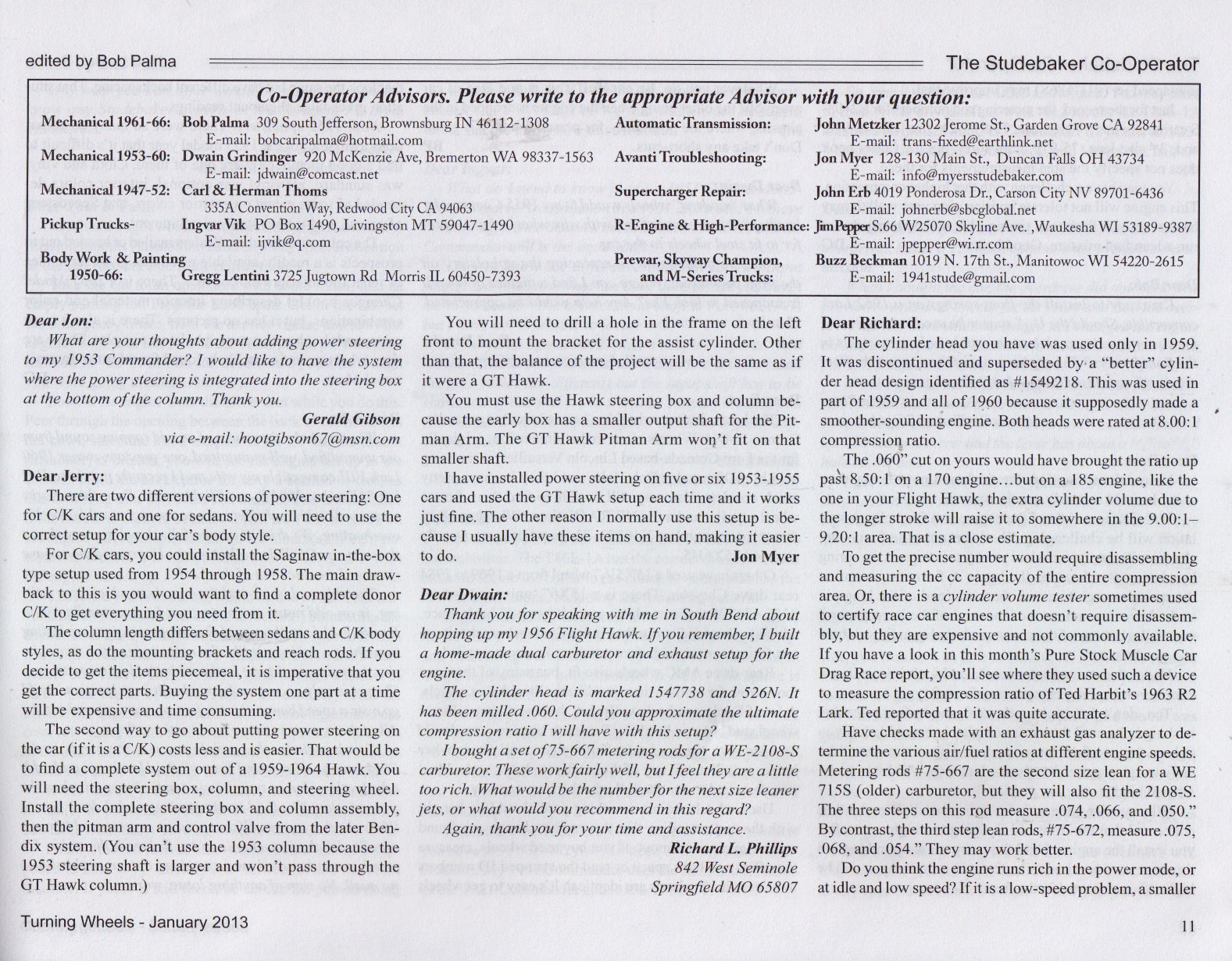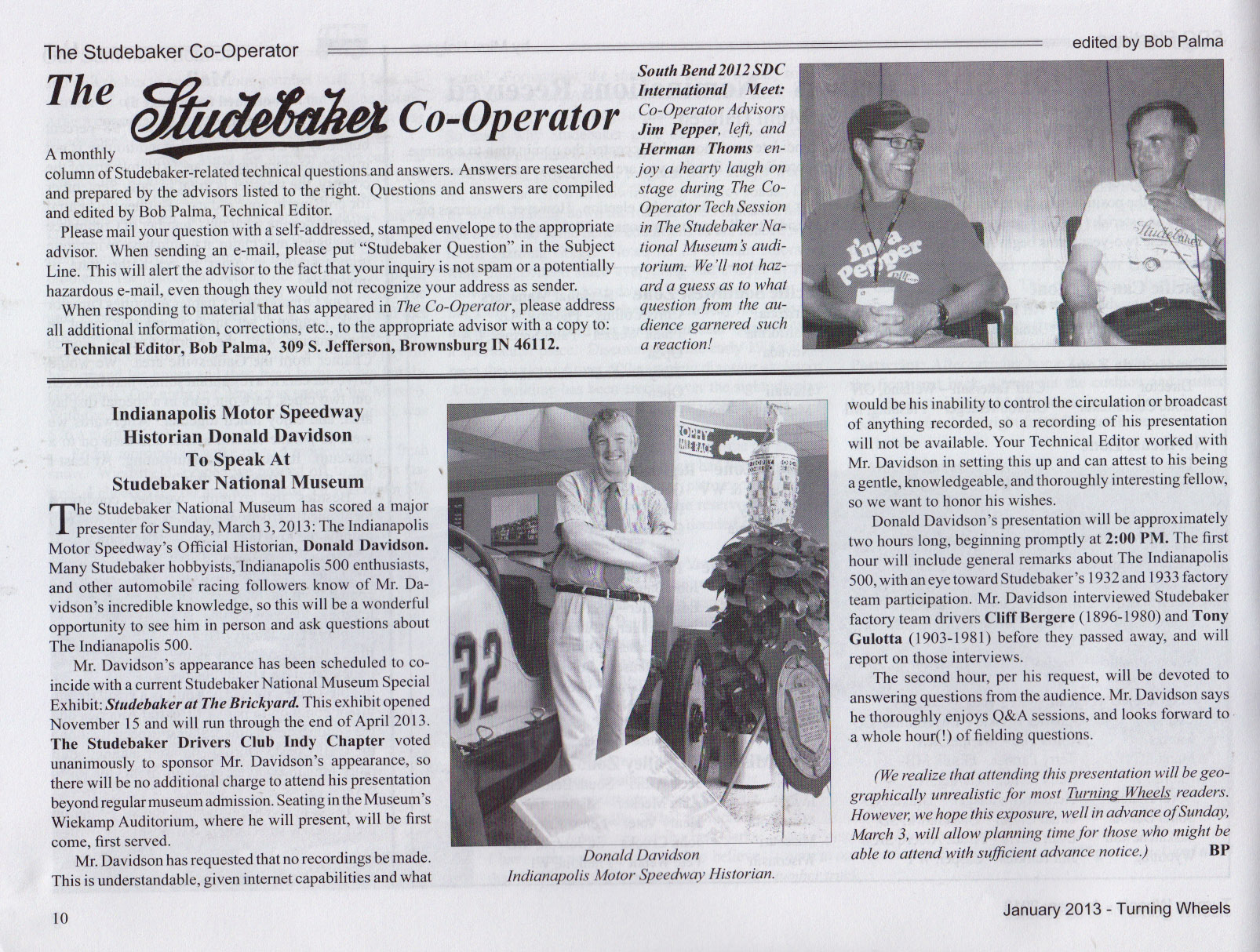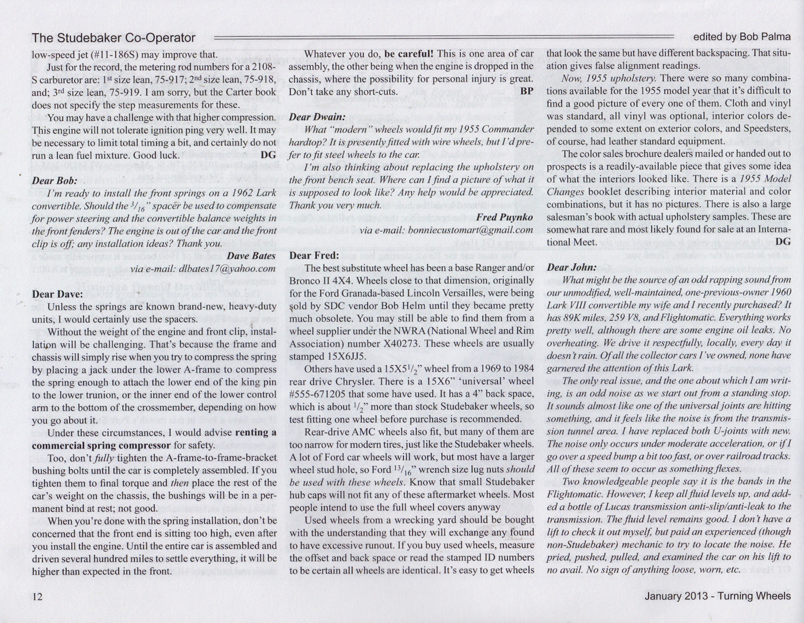 Bob's Studebaker Resource Website The Cooperator Turning Wheels, January 2013
