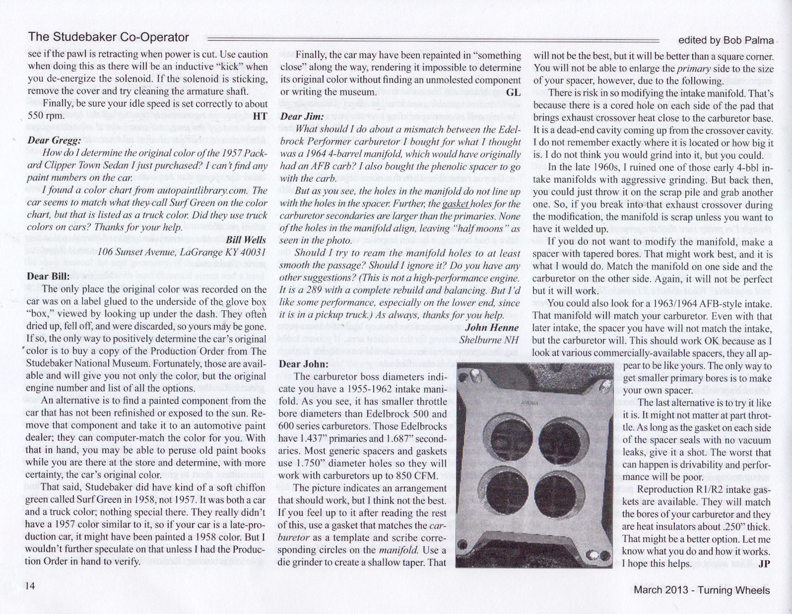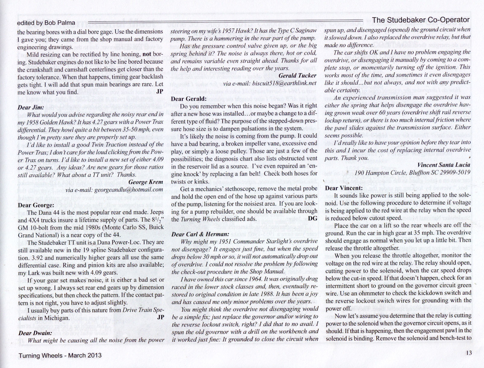 Bob's Studebaker Resource Website The Cooperator Turning Wheels, March 2013