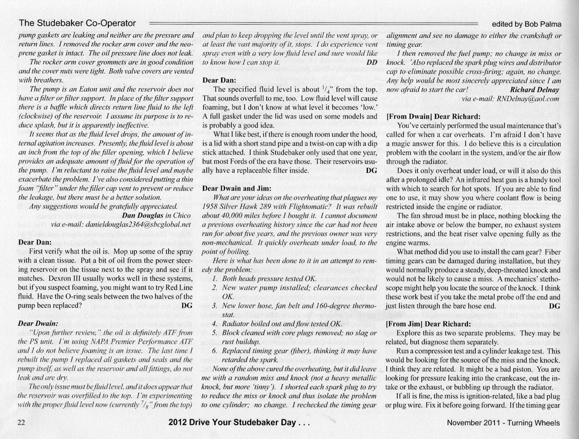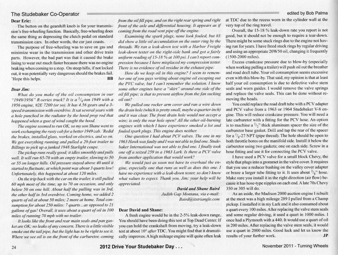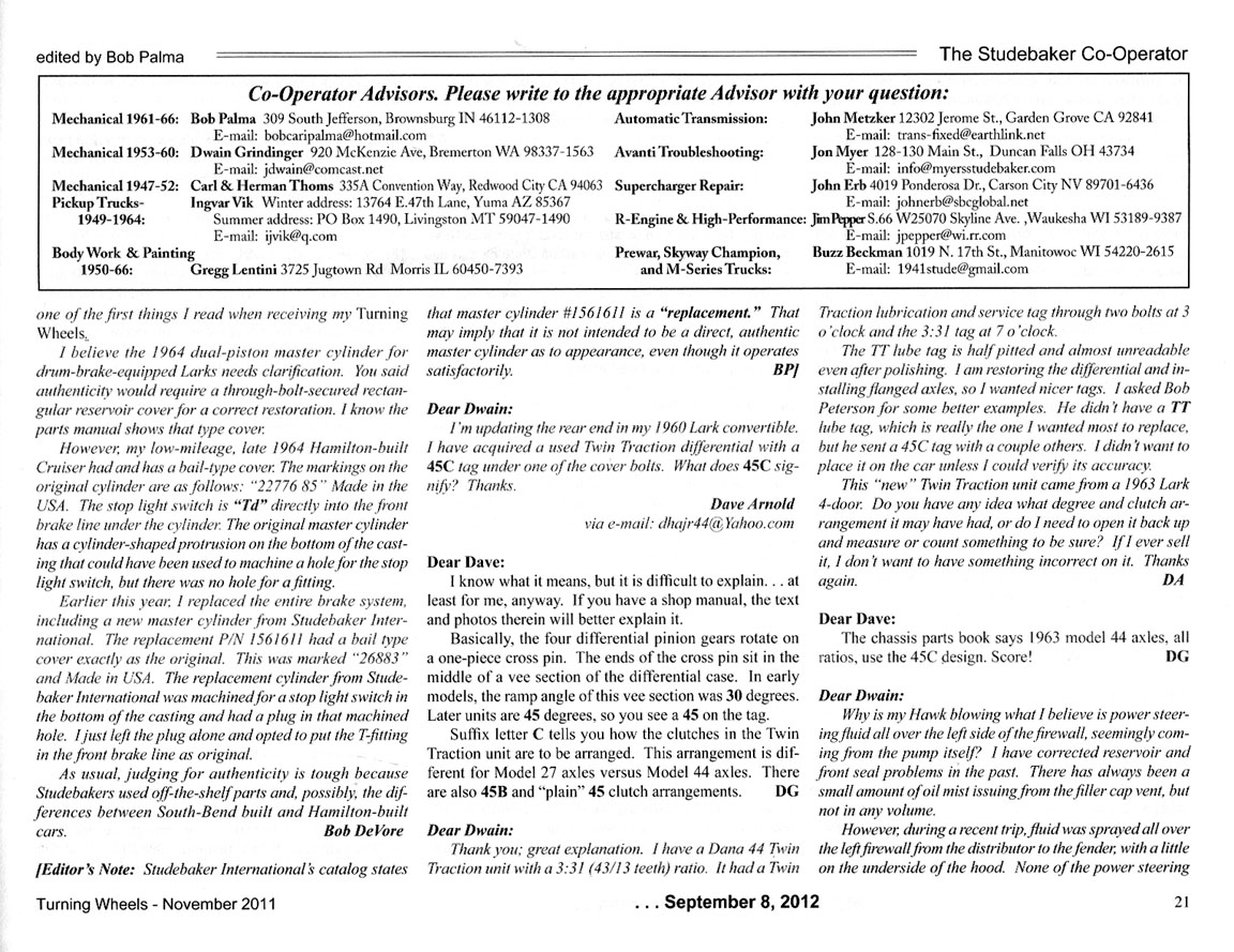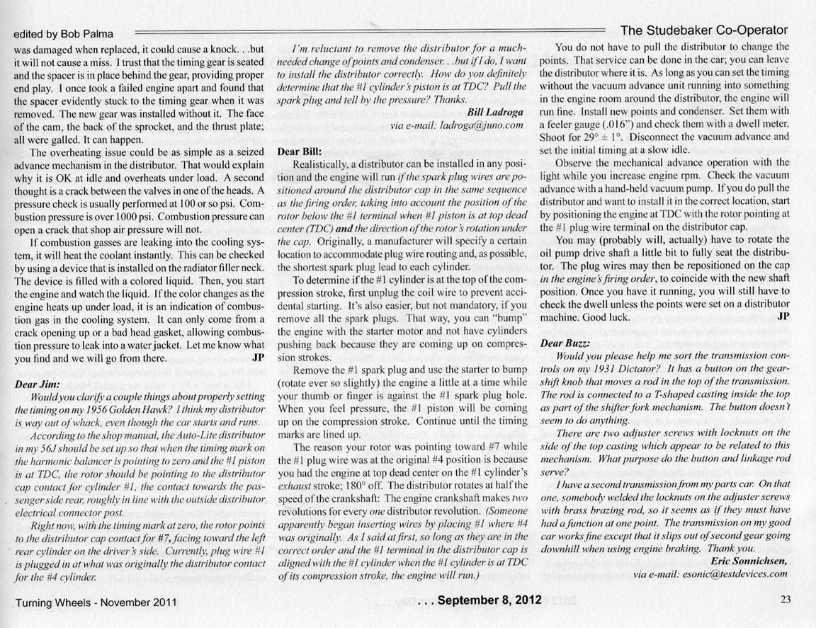 Bob's Studebaker Resource Website The CO_Operator Turning Wheels, Nov 2011