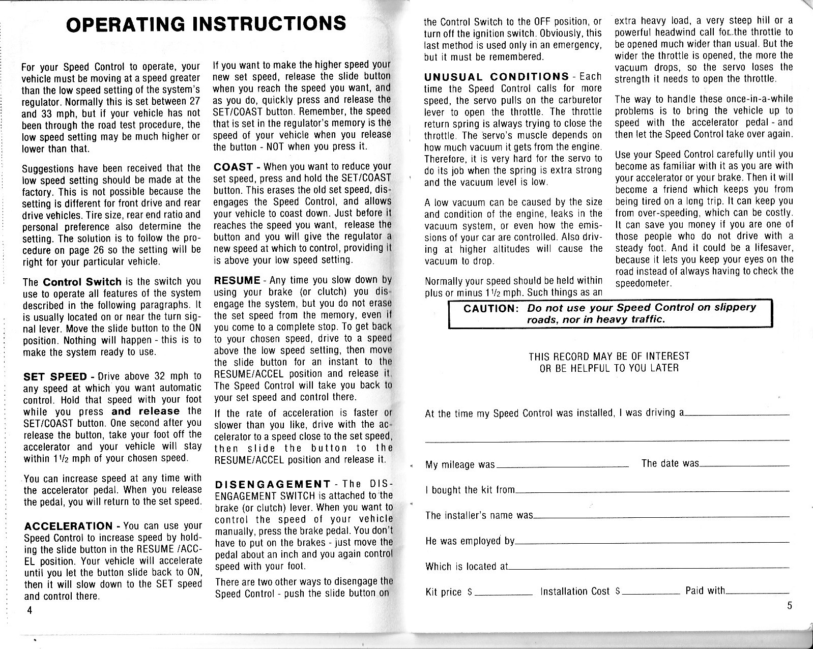 Avanti II's Dana Speed Control Manual
