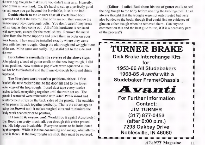 Pics are of a 63 Avanti / Rusted Hog troughs in place / Removed, etc