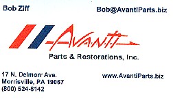 ![]() Avanti Parts & Restoration Service Bob Ziff Morrisville, PA 800-524-8142